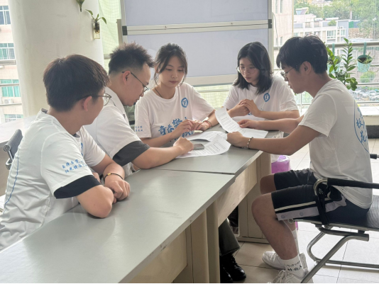 图为社会实践团队成员入院前熟悉访谈问题。刘霜供图