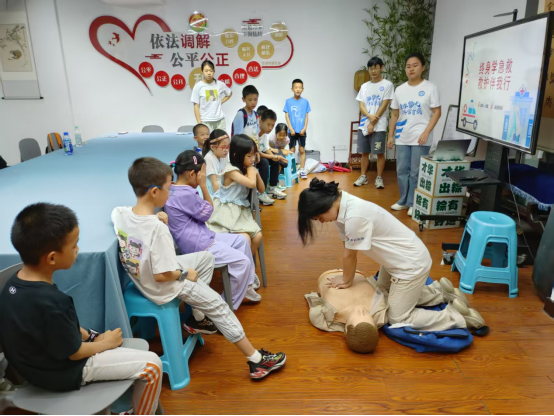 本次活动以“知识传递+实践体验”为核心,结合医学专业特色与青少年成长需求,精心设计了爱国教育、应急救护、科技体验、民族文化、环保安全五大主题内容。活动期间,志愿者通过红旗制作、急救模拟、垃圾分类等多个互动环节,让近500名社区青少年在动手操作中收获知识——从缝制五星红旗中厚植家国情怀,到练习心肺复苏时掌握急救技能;